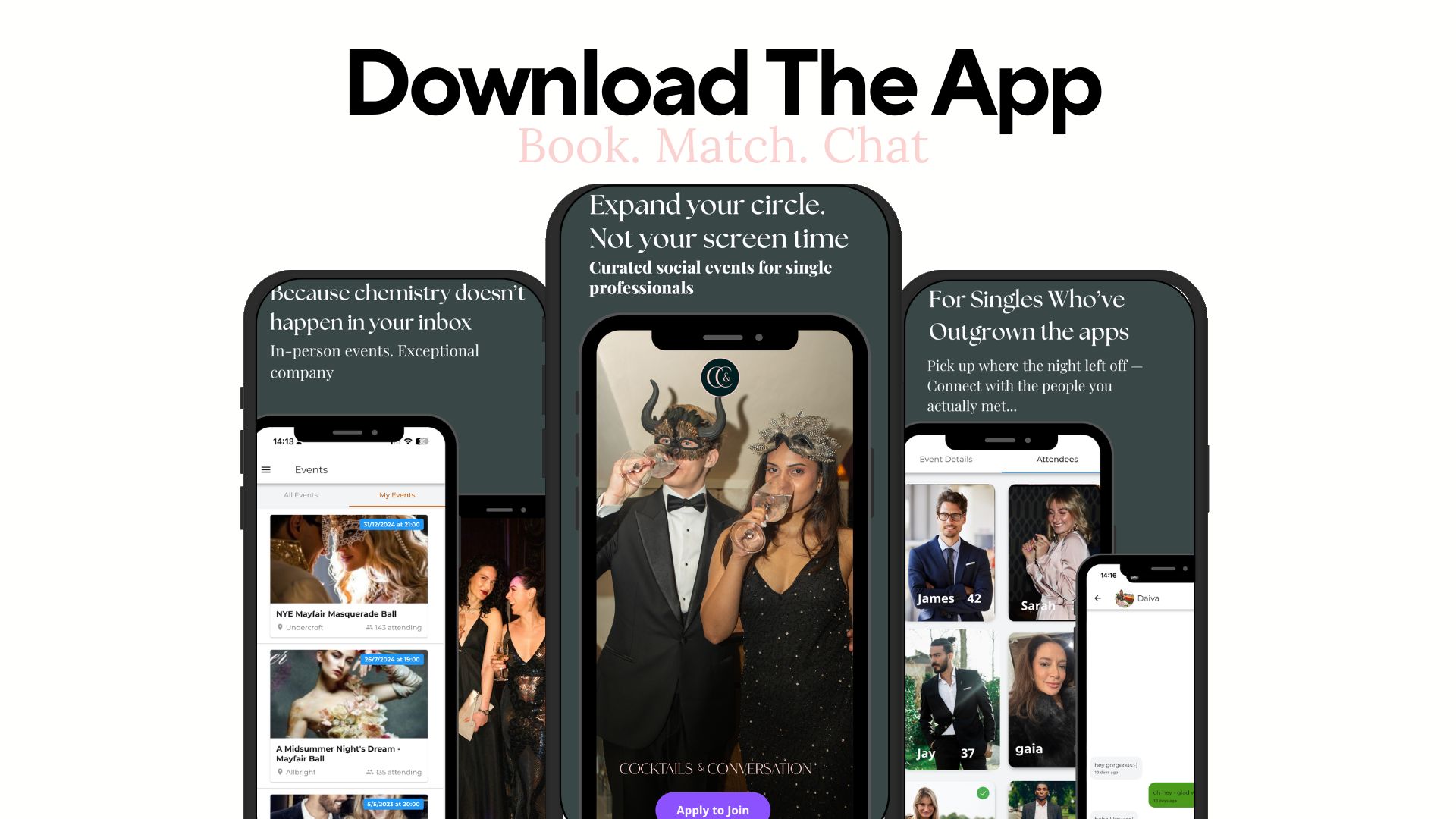 At Cocktails & Conversation, we believe in meeting the old-fashioned way — face-to-face, over a great cocktail, in beautiful surroundings. That’s where real chemistry begins. But we’ve added a modern twist to make your experience even more meaningful.