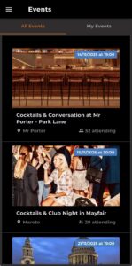 After the event, guests can use our app to register for future mixers, browse the profiles of people who attended the same event, and continue the conversation with a simple match and chat.